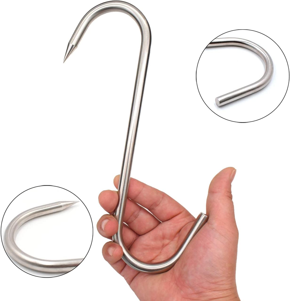 - Hameçon pointu : un côté du crochet est très tranchant, il est facile à insérer dans la viande et la suspension de la viande est sans effort. Une autre extrémité est lisse pour réduire les dommages aux mains.